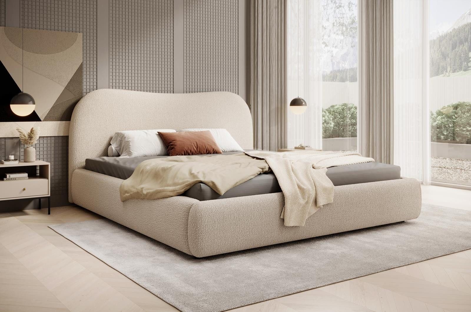 True elegance begins with the feeling of comfort surrounding you from every angle. This bed blends the luxury of trendy Bouclé fabric with a soft, flowing design to create a warm and inviting sanctuary in your bedroom. The gentle lines of the curved headboard lend a modern and soft character to the space, while the fully padded frame provides perfect visual and structural balance. It is the piece that turns your room into a space overflowing with peace and relaxation.
