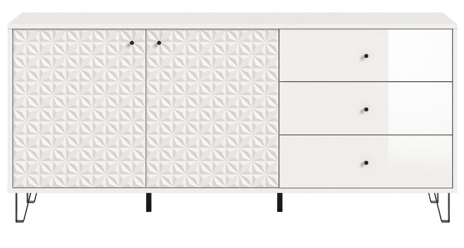 • Design: Two side doors with 3D geometric texture + four central drawers for smart organization