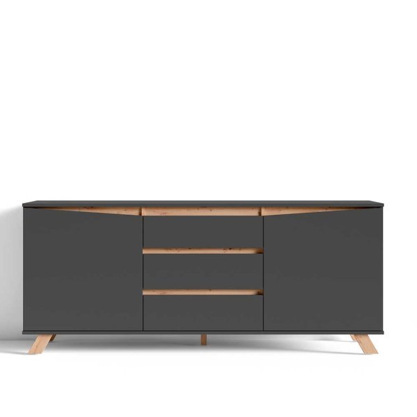 اللون: رمادي غامق مع تفاصيل وأرجل بلون الخشب الطبيعي.