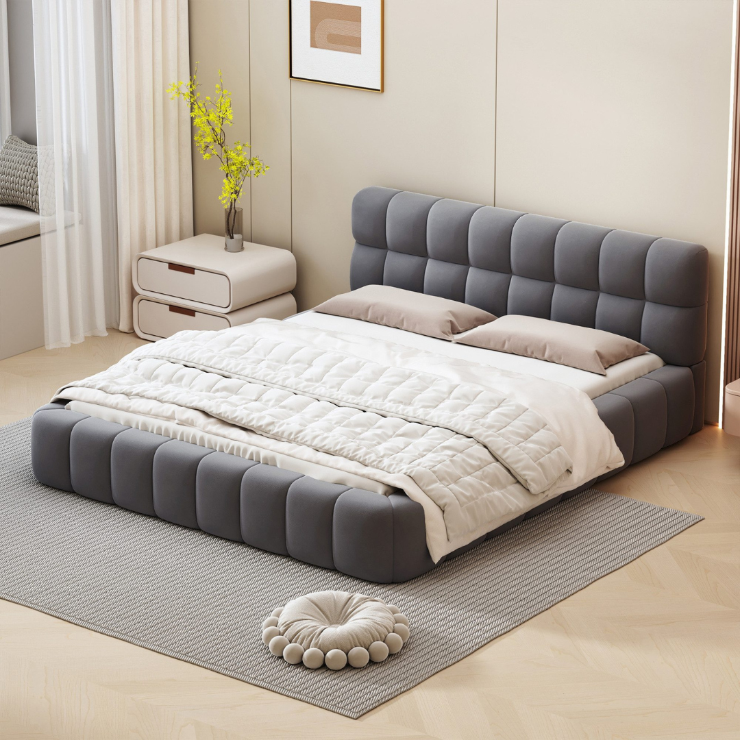 النوم الجيد يبدأ من هنا. هذا السرير المبطن بتصميمه الهادئ يمنح غرفتك لمسة من السكينة التي تحتاجها للاسترخاء التام. قماش الكتان الطبيعي بلونه الرمادي يضفي مظهراً عصرياً ونظيفاً، بينما يوفر الهيكل الخشبي المتين دعماً ثابتاً لليالٍ طويلة من الأحلام السعيدة. بساطة التصميم تجعل من السهل تنسيقه مع أي أسلوب تحبه، ليصبح رفيقك المثالي في كل صباح ومساء.