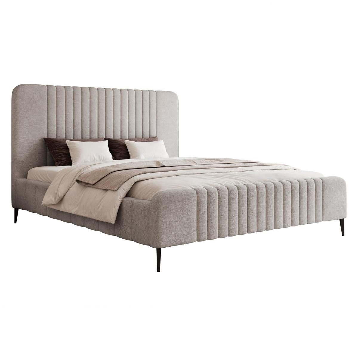 التصميم: خطوط طولية متوازية تغطي اللوح الأمامي ومقدمة السرير لإعطاء شعور بالارتفاع والأناقة.