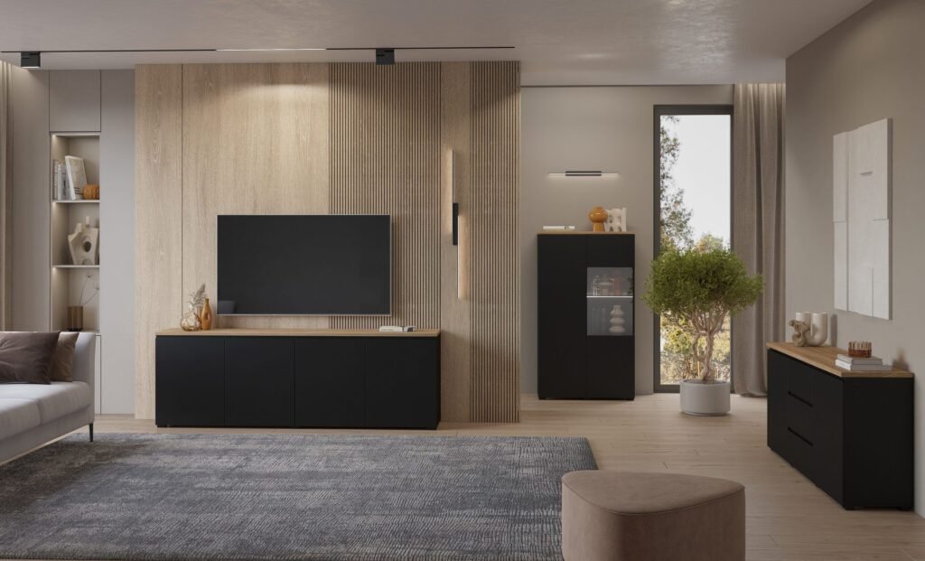 تخيل لحظة عودتك للمنزل بعد يوم طويل، لتستقبلك غرفة دافئة تهمس لك بالهدوء وتجمع عائلتك في لحظات سعيدة. بوفيه أُلفة وُجد ليكون رفيق تلك الأوقات؛ بتصميم يمزج بين فخامة الأسود ودفء الخشب، ليحول غرفتك من مجرد مساحة جافة إلى ملاذ يملؤه الانسجام والمودة. إنه الوعاء الذي يضم ذكرياتك الصغيرة خلف أبوابه، ليمنحك شعوراً بأن كل شيء في مكانه الصحيح.