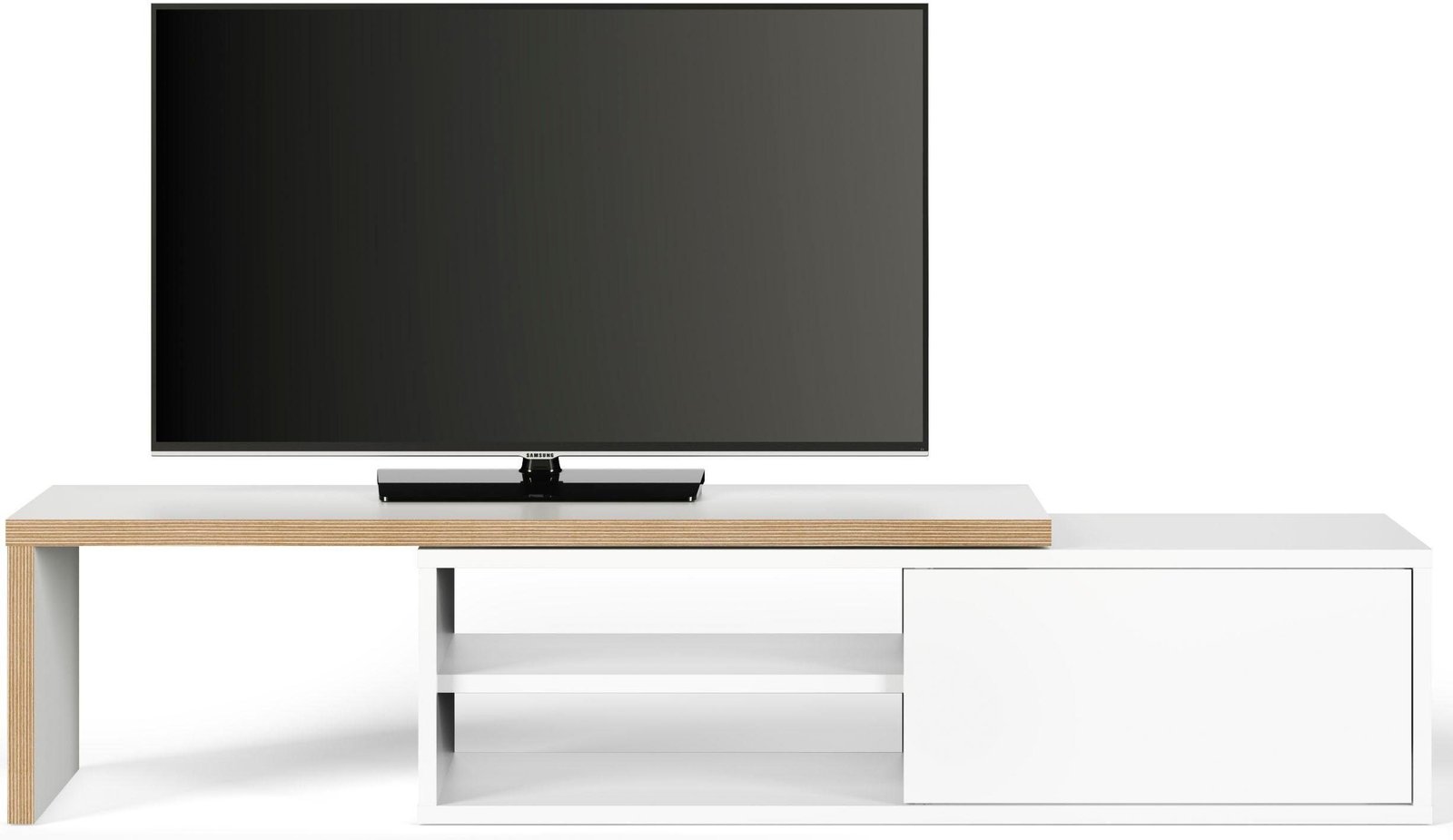 - النوع: وحدة تلفزيون (TV Unit) بتصميم “L-Shape” قابل للتمدد.
